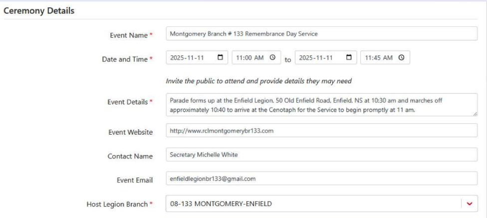 with more information available on The Royal Canadian Legion's website.