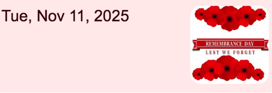 October 31, 2025, until Remembrance Day, Tuesday, November 11, 2025.
