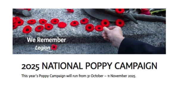 The Royal Canadian Legion's 2025 Poppy Campaign will run from the last Friday in October,